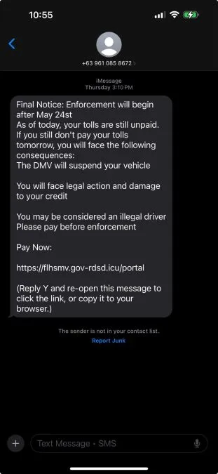 ONGOING THREAT: Fraudulent text messages demanding payment for alleged unpaid tolls continue to target Hillsborough County residents.