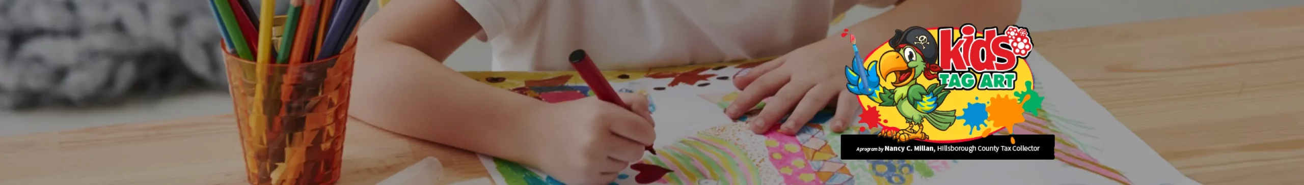 The Kids Tag Art Program (KTA) is a creative fundraiser that gives 5th grade students at Hillsborough County elementary schools the opportunity to showcase their artistic abilities by designing a vanity license plate in art class that are printed on metal plates and sold to family, friends, and the public. KTA provides additional funding for elementary classroom art programs while students learn the practical application of license plate art, fashioned after Florida’s 120+ specialty license plates.